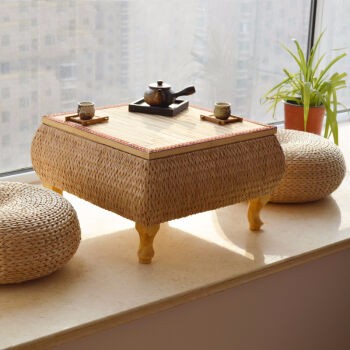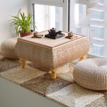 MEILVJU藤编飘窗桌阳台茶几简约日式榻榻米茶几矮桌可储物实木小茶几炕桌 小号桌(43*43*30cm) 整装